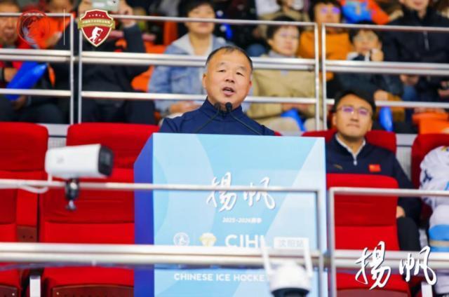 沈阳市政府党组成员、副市长刘克斌在致辞中表示,冰球运动所展现的勇气、速度与激情,与“冰雪之城”沈阳的城市品格高度契合,热血沸腾的冰球比赛也为沈阳冰雪运动发展注入了澎湃动能。他强调,沈阳是一座有着悠久冰雪运动底蕴的城市,从传统的冰嬉到现在的冰球,沈阳始终秉承“冰天雪地也是金山银山”的发展理念,持续巩固和扩大“带动三亿人参与冰雪运动”实践成果,厚植冰雪文化根基,奋力续写沈阳的冰雪荣光。刘克斌指出,蓬勃发展的冰雪运动,正为沈阳这座工业城市注入的崭新的发展活力。本次揭幕战的成功举办将掀开沈阳冰雪产业高质量发展的美好新篇。